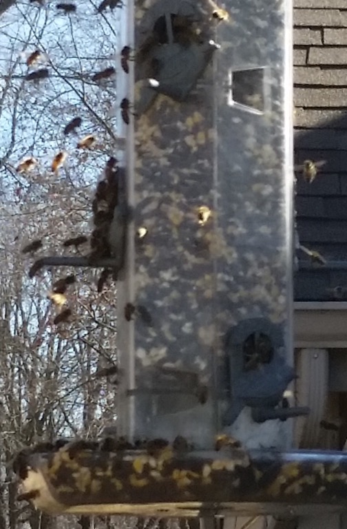 We are talking sunflower seeds, millet, cracked corn, things I didn’t even know my bees can lift, let alone get into their tummies. Honestly, these bees are like hungry teenagers, glomming onto anything they can find.
